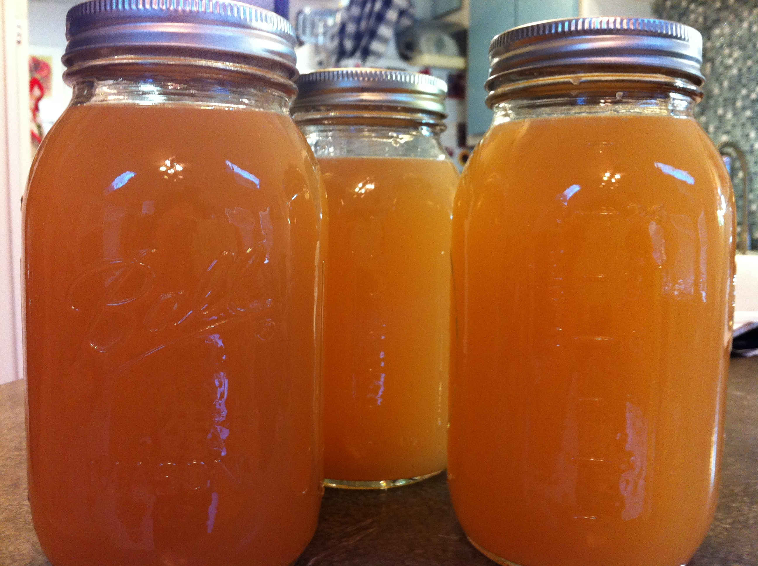 Notes: a) I use apple cider in this recipe.  It has a better flavor than juice, plus, it still has the pectin.  Pectin has been centrifuged out of apple juice.  I generally use Martinelli’s Cider because it’s always available.  However, if you can get fresh cider, all the better. In other words, don’t substitute apple juice for cider.