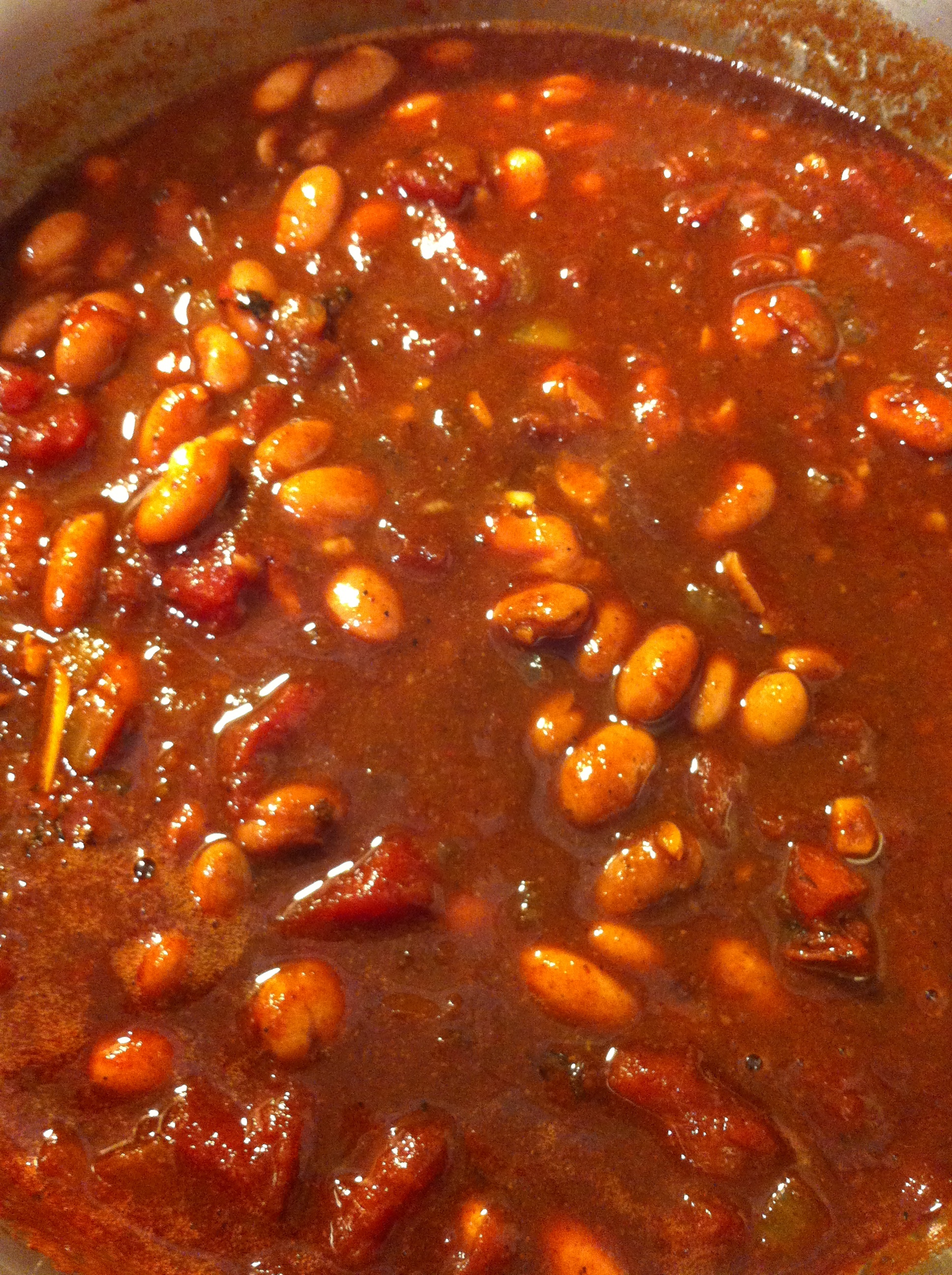 Cooking the beans and vegetables. Be sure to not let the beans get too dry.