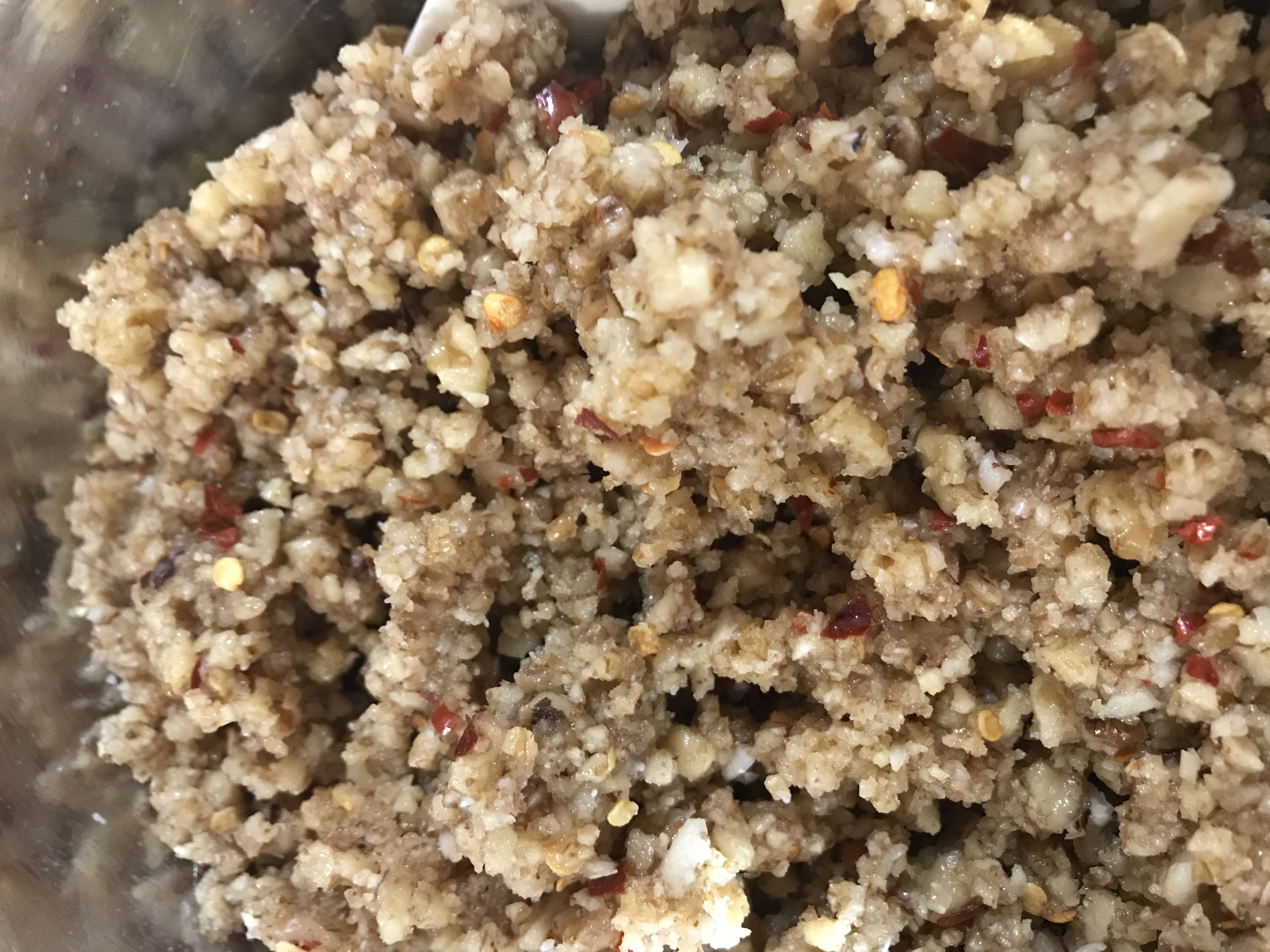 The next day, mix together the walnuts, garlic, pepper flakes, and salt. Taste for seasoning and adjust as you like.